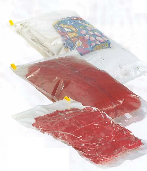 Das zu verpackende wird in den Beutel gesteckt, der zip-Verschluss wird geschlossen, die Luft herausgedrückt – übrig bleibt ein um bis zu 80 % im Volumen verkleinertes Gepäckteil. Ideal auch für die letzten Reserven eines schon randvollen Koffers oder Reiserucksacks !